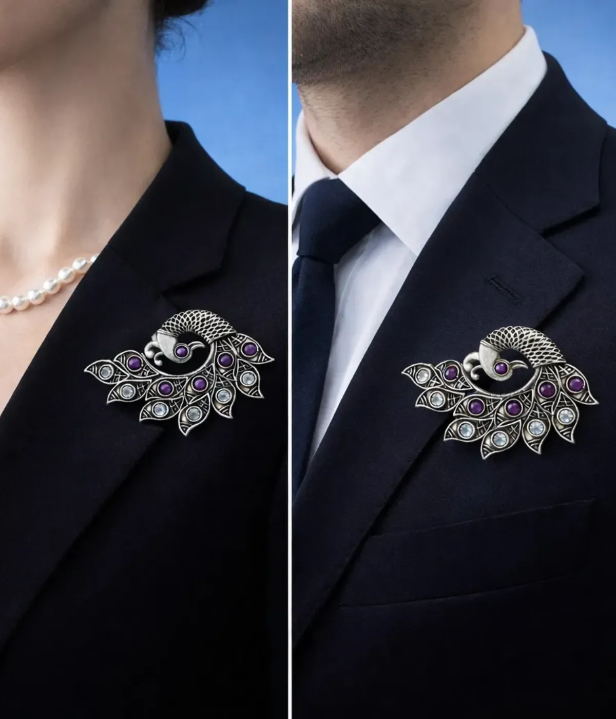 Add to cart 925 Sterling Silver Kurta Button Chain for Women | Handcrafted Antique Floral Shirt Brooch with Linked Latkan (A-246)