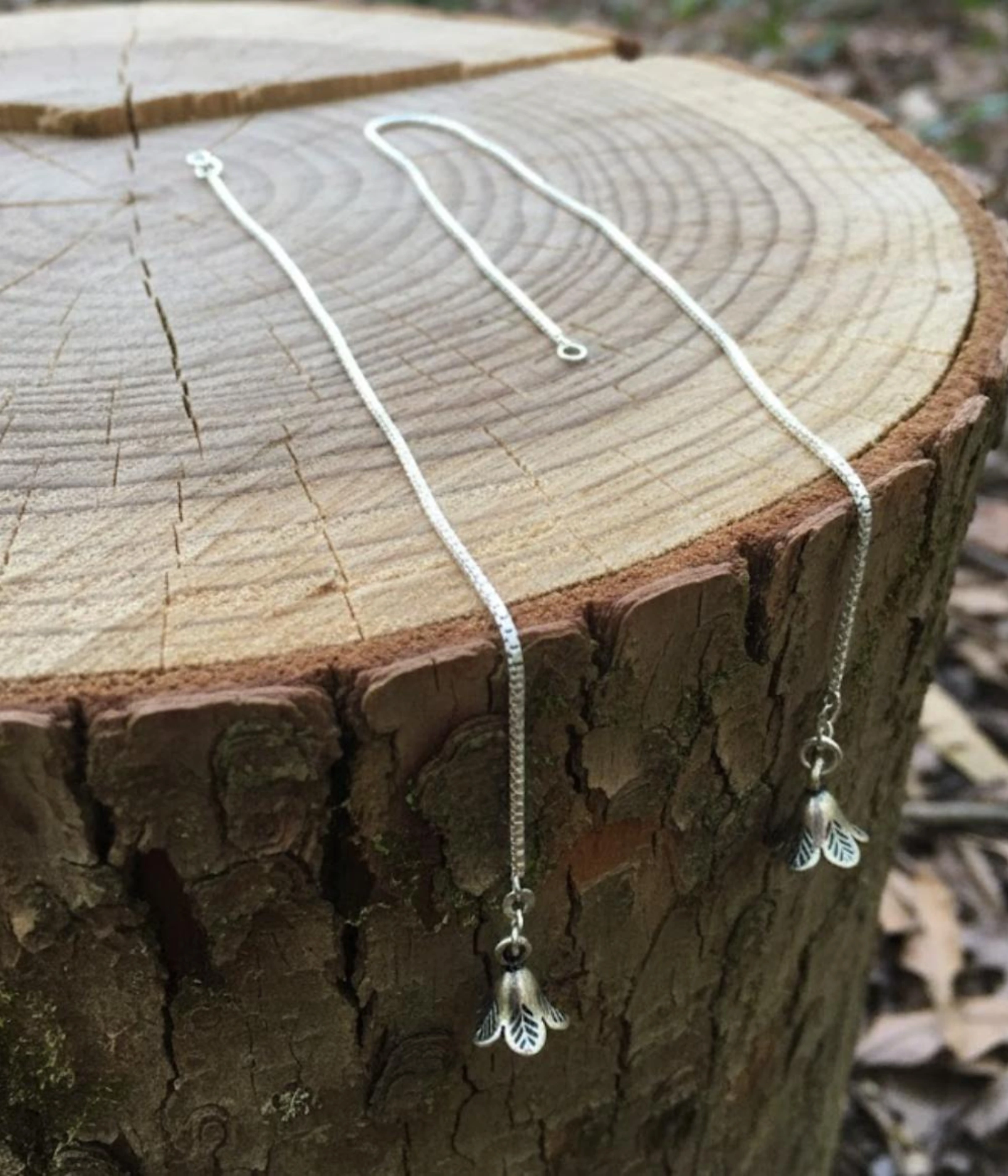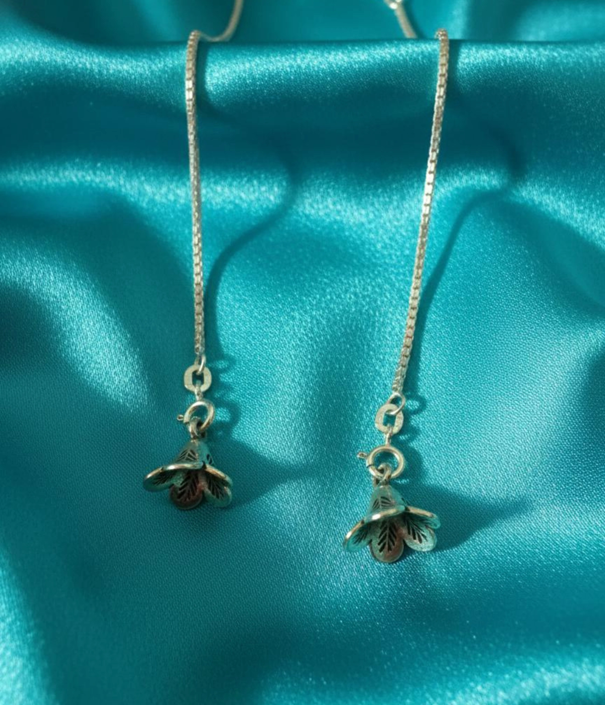 | Design/Style | Handcrafted Floral Tulip Dangle, Venetian Box Chain Pattern |