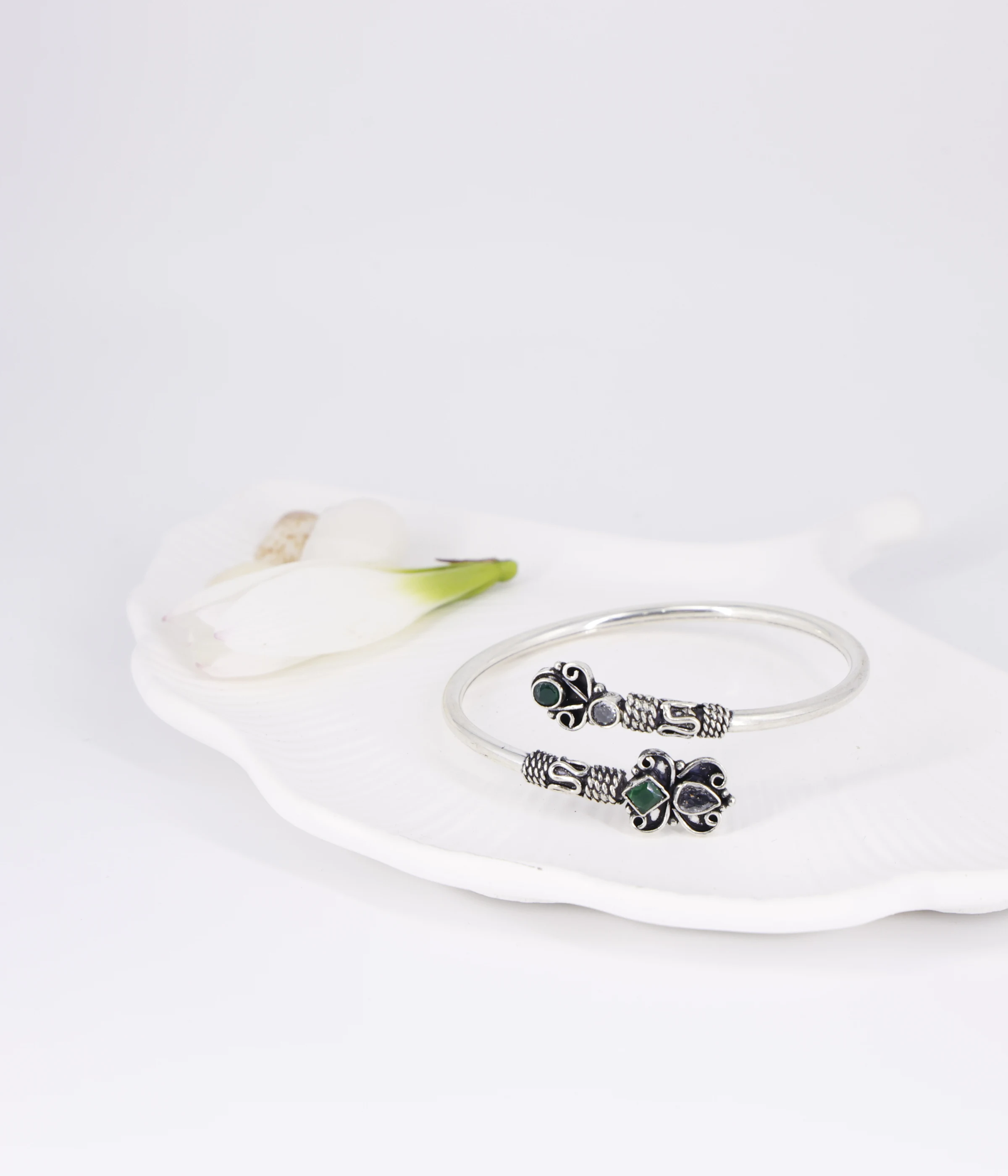 Be the first to review “Ethnic Style Gemstone Open Cuff | Oxidized Silver 15 gm | Green Stone Butterfly Ends (A-38)”