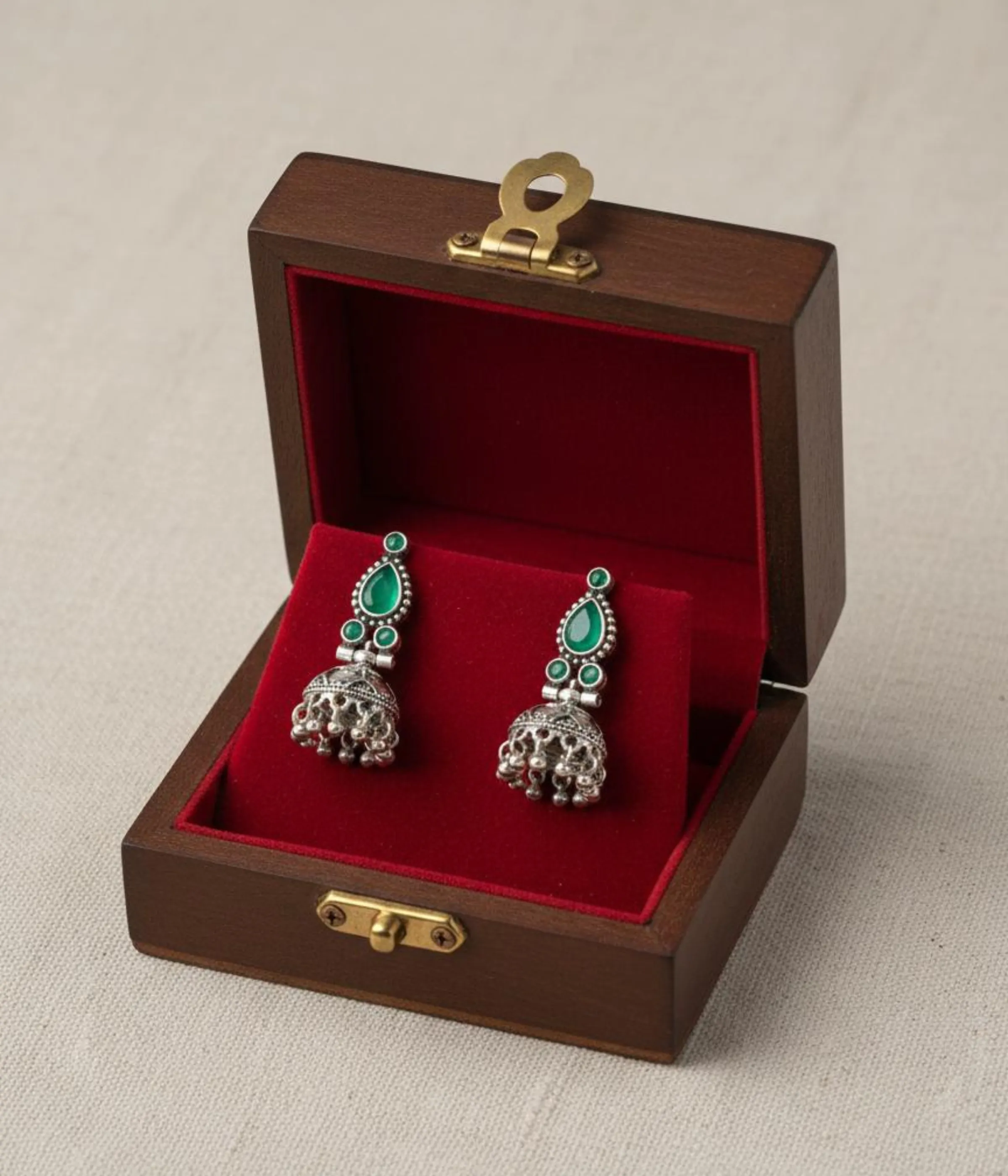 Emerald Green Teardrop Jhumkas | Traditional Indian Dangle (A-198)