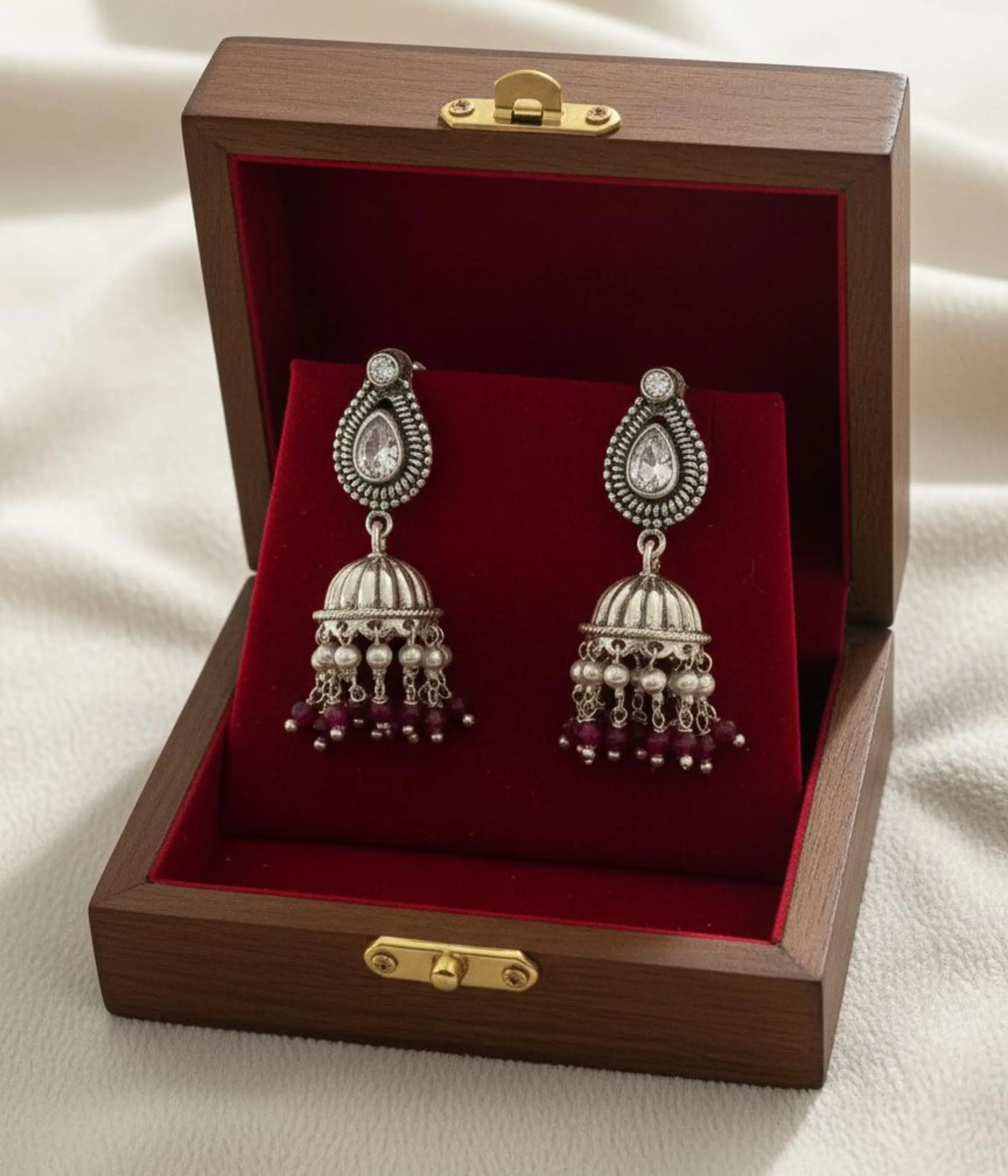 Be the first to review “Oxidized Silver Jhumka Earrings | Red Bead Drop Dangles (A-204)”