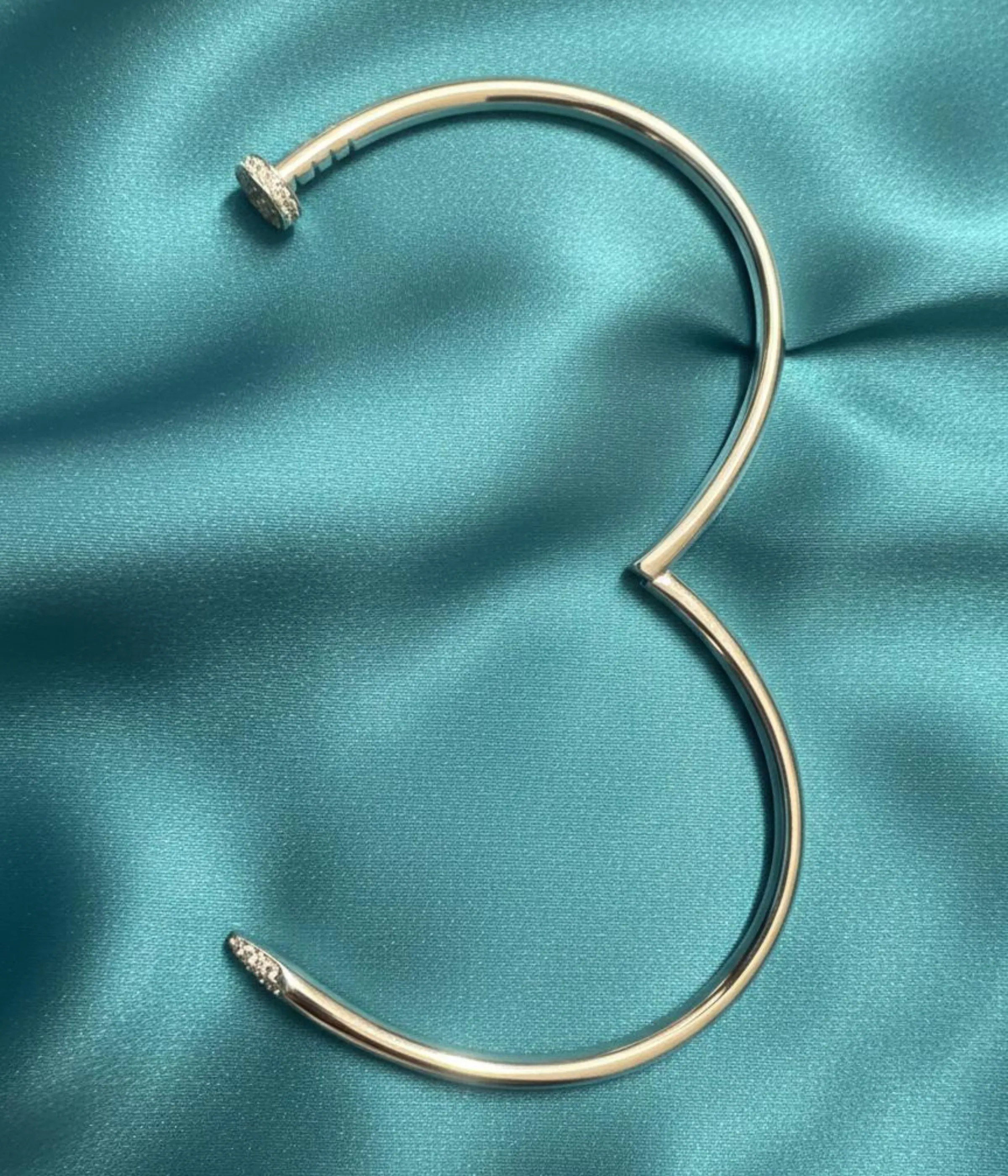 Diamond-Like Detailing: The head and tip of the nail are meticulously accented with shimmering, pave-set stones (likely Cubic Zirconia), adding a touch of brilliance and ensuring this is a true bold statement bracelet for men.