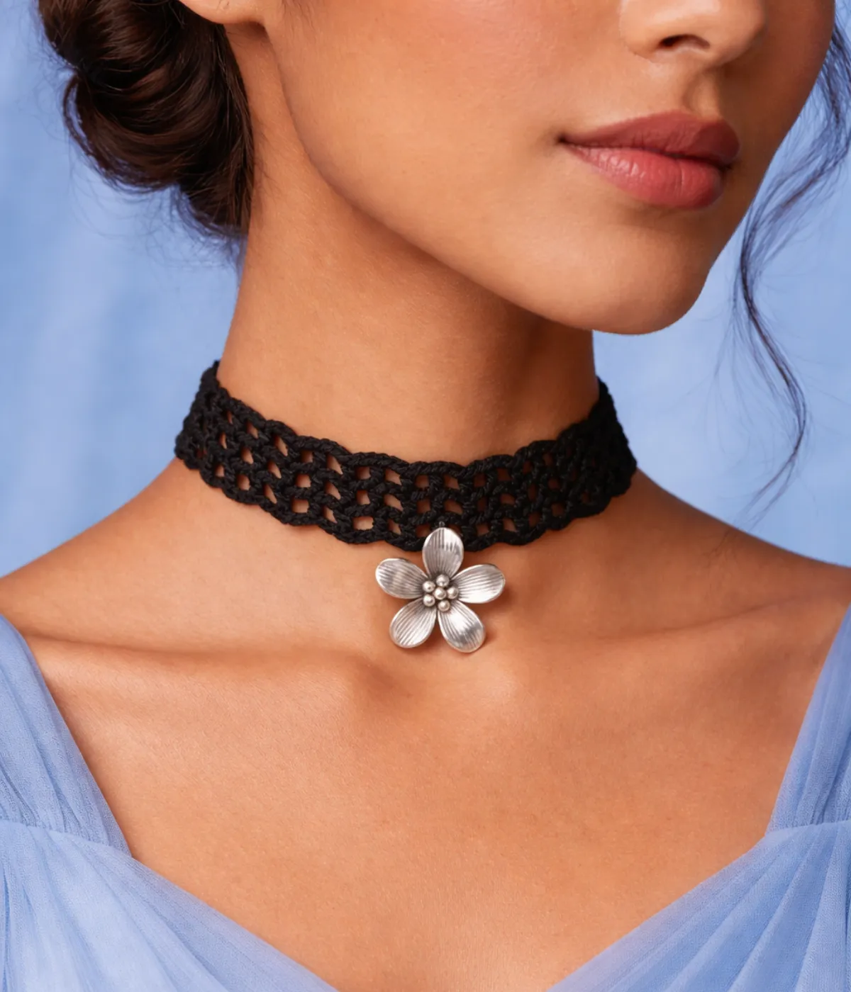 - Product Name: Handwoven Choker Necklace with Silver Charm for Women